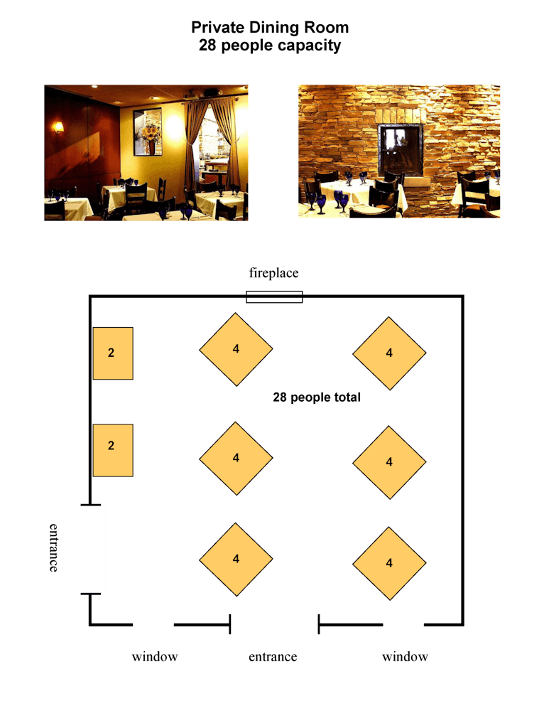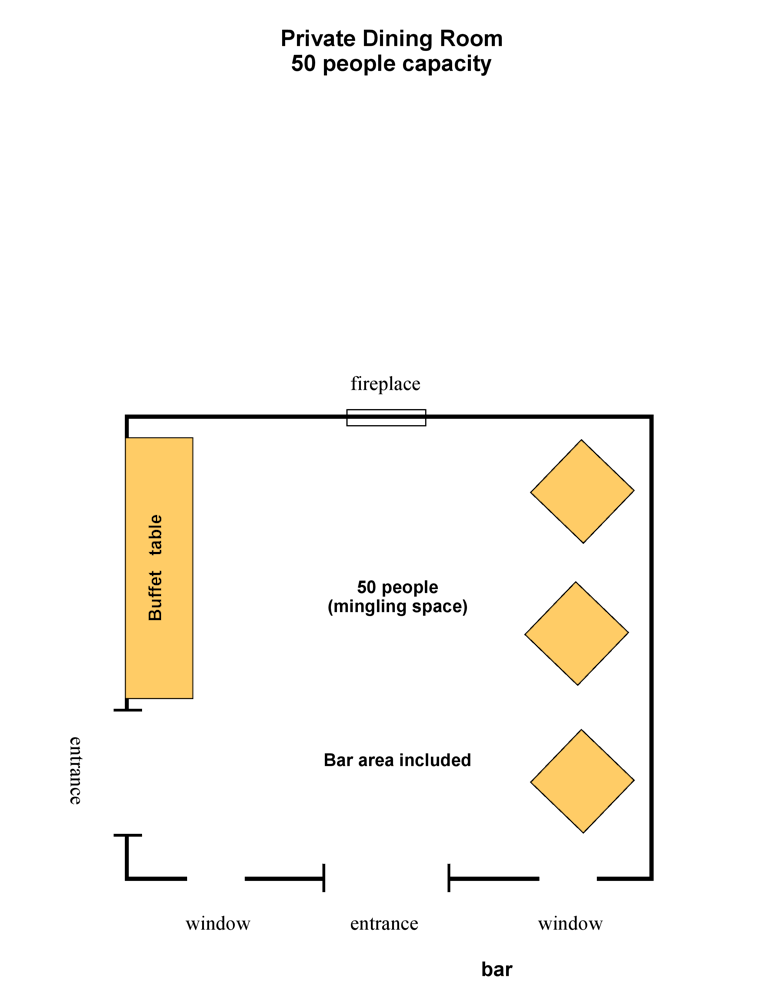 The Downtowner Woodfired Grill offers a versatile private dining room for our guests. Situated at the back of the restaurant and opening out onto the bar, this charming room can accommodate up to 34 people for sit-down meals and has the capacity to hold many more for casual gatherings. Equipped with visual and audio equipment (including a video projector and a screen), this room is ideal for business-related meals; it is a great venue for combining work with fantastic food and atmosphere.