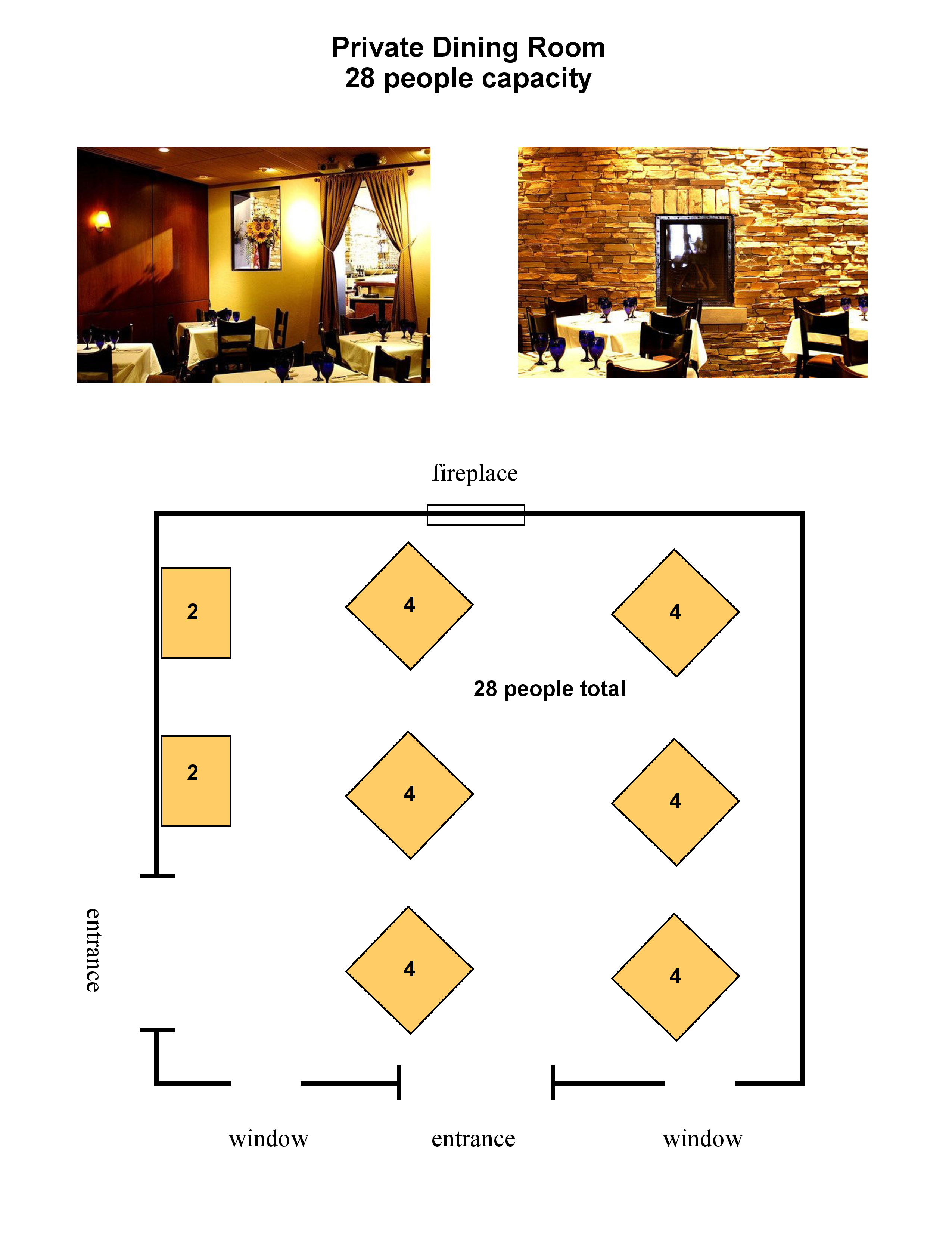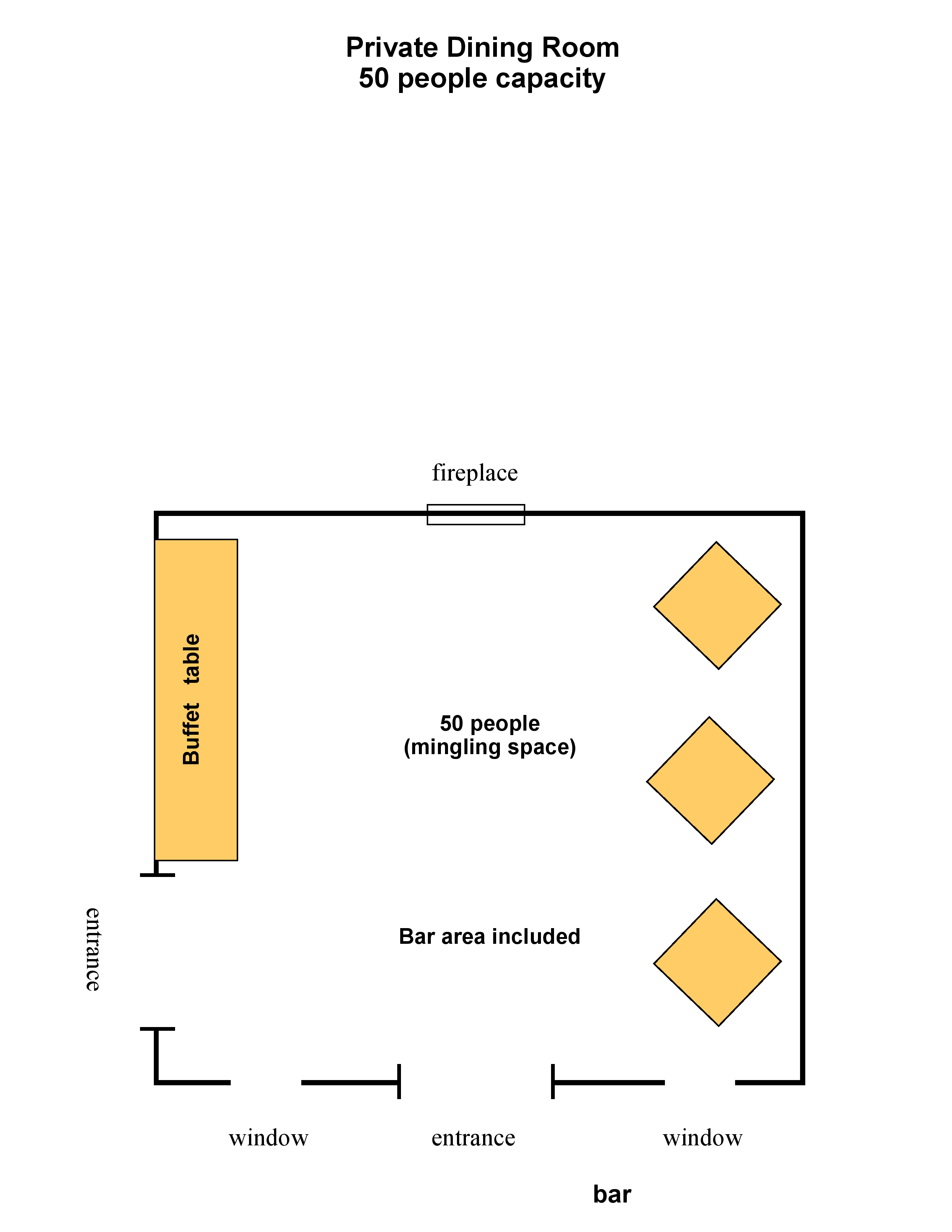 The Downtowner Woodfired Grill offers a versatile private dining room for our guests. Situated at the back of the restaurant and opening out onto the bar, this charming room can accommodate up to 34 people for sit-down meals and has the capacity to hold many more for casual gatherings. Equipped with visual and audio equipment (including a video projector and a screen), this room is ideal for business-related meals; it is a great venue for combining work with fantastic food and atmosphere.