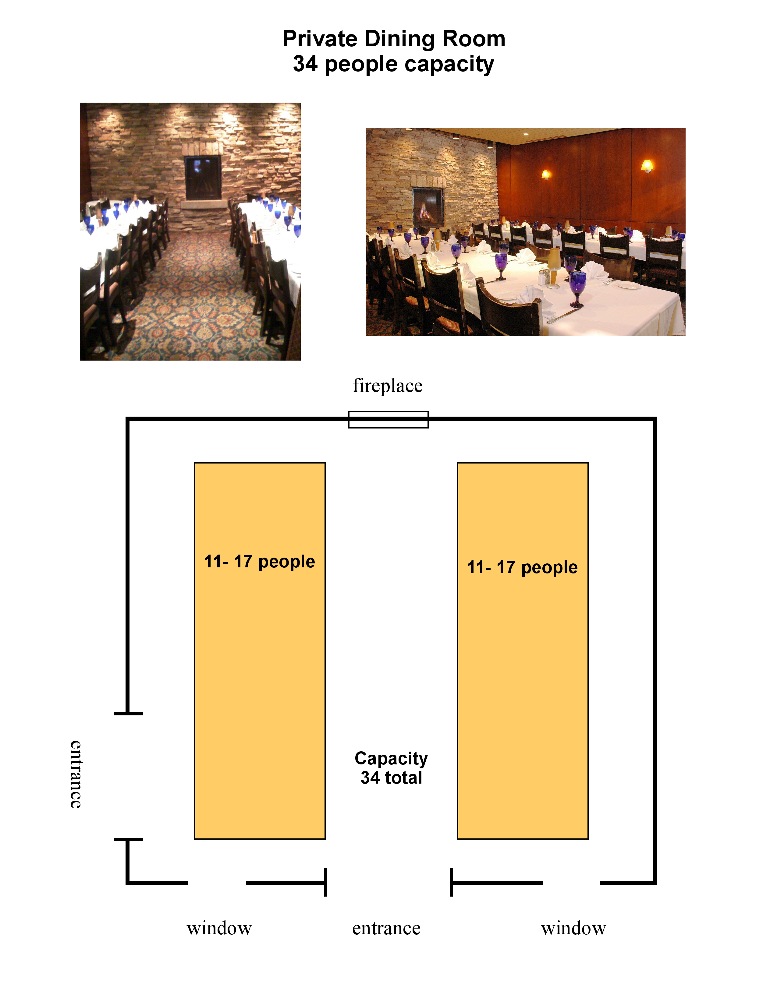 The flagstone wall at the back of the space holds a fireplace. The adjacent walls are of dark wood paneling. Combined with softened lighting, this adaptable room can be warm and intimate for personal gatherings or lit to meet your working needs. It’s the perfect setting for any occasion.
